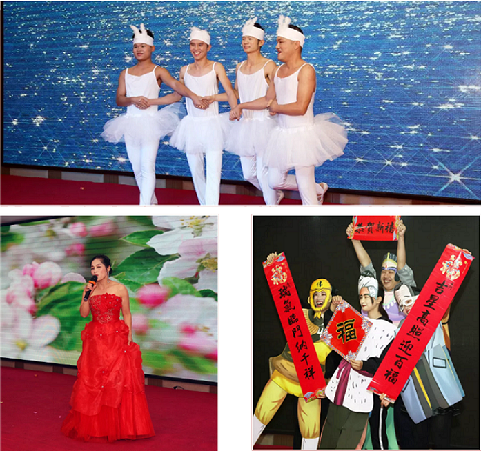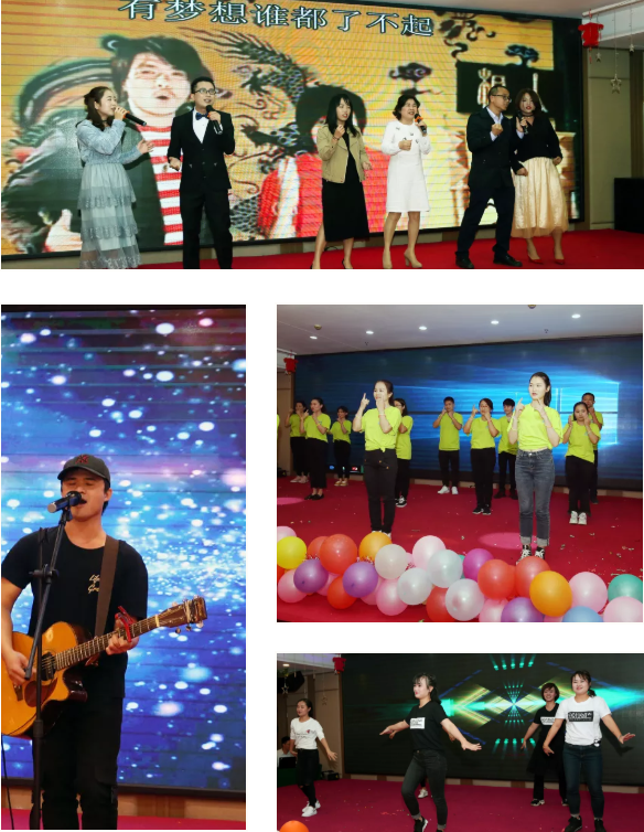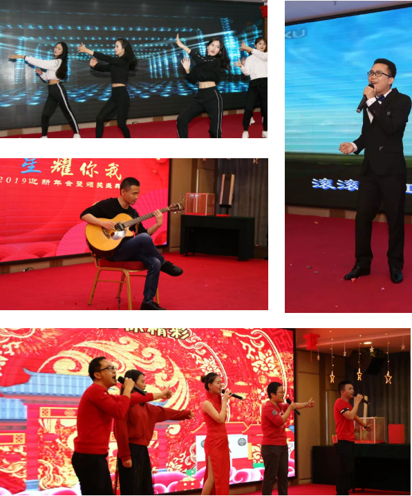 年會現(xiàn)場,其樂融融,員工們各展所長,紛紛呈現(xiàn)出精彩的表演,詼諧勵志的四小天鵝、惟妙惟肖的大咖模仿秀、溫暖深情的獨(dú)唱、美妙動聽的吉他彈奏、動感十足的舞蹈、祝福滿滿的手語舞、幽默搞笑的三句半、創(chuàng)意改編合唱等,通過節(jié)目紛紛表達(dá)出對同事、公司的樸實情感及對美好未來的祝福。
