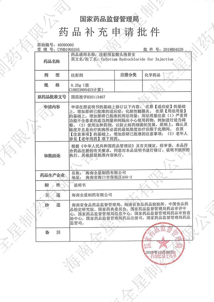 經(jīng)過公司研發(fā)團(tuán)隊(duì)長(zhǎng)期循證醫(yī)學(xué)研究,并結(jié)合上市原研藥品使用說明書,我公司向國家藥品監(jiān)督管理局提交的注射用奧美拉唑鈉、注射用鹽酸頭孢替安(4種規(guī)格)和注射用頭孢呋辛鈉(3種規(guī)格)適應(yīng)癥的補(bǔ)充申請(qǐng)近日獲得批準(zhǔn),新核準(zhǔn)的藥品使用說明書拓展了臨時(shí)用藥范圍,用法用量描述更詳細(xì)更為安全,提供了更加嚴(yán)謹(jǐn)?shù)挠盟幰罁?jù),有助于臨床醫(yī)生在一線工作中制定出更準(zhǔn)確、更有效、更有針對(duì)性的治療方案。今后,公司將繼續(xù)提高研發(fā)力量,加強(qiáng)技術(shù)生產(chǎn)工藝,嚴(yán)把質(zhì)量關(guān)口,為市場(chǎng)提供更多高品質(zhì)、高標(biāo)準(zhǔn)的優(yōu)質(zhì)產(chǎn)品,為2030年健康夢(mèng)中國夢(mèng)添磚加瓦,獻(xiàn)上我司的一份努力。